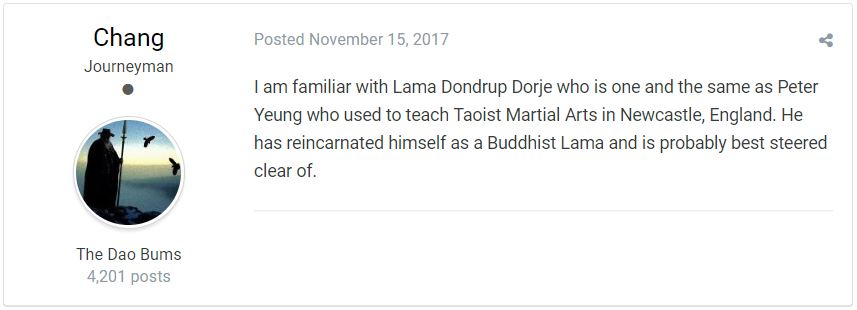 Over 20 years, every student we saw that achieve things either in Buddhism, in martial arts, or in life, or who had good relationships in the real world, left Peter Yeung.